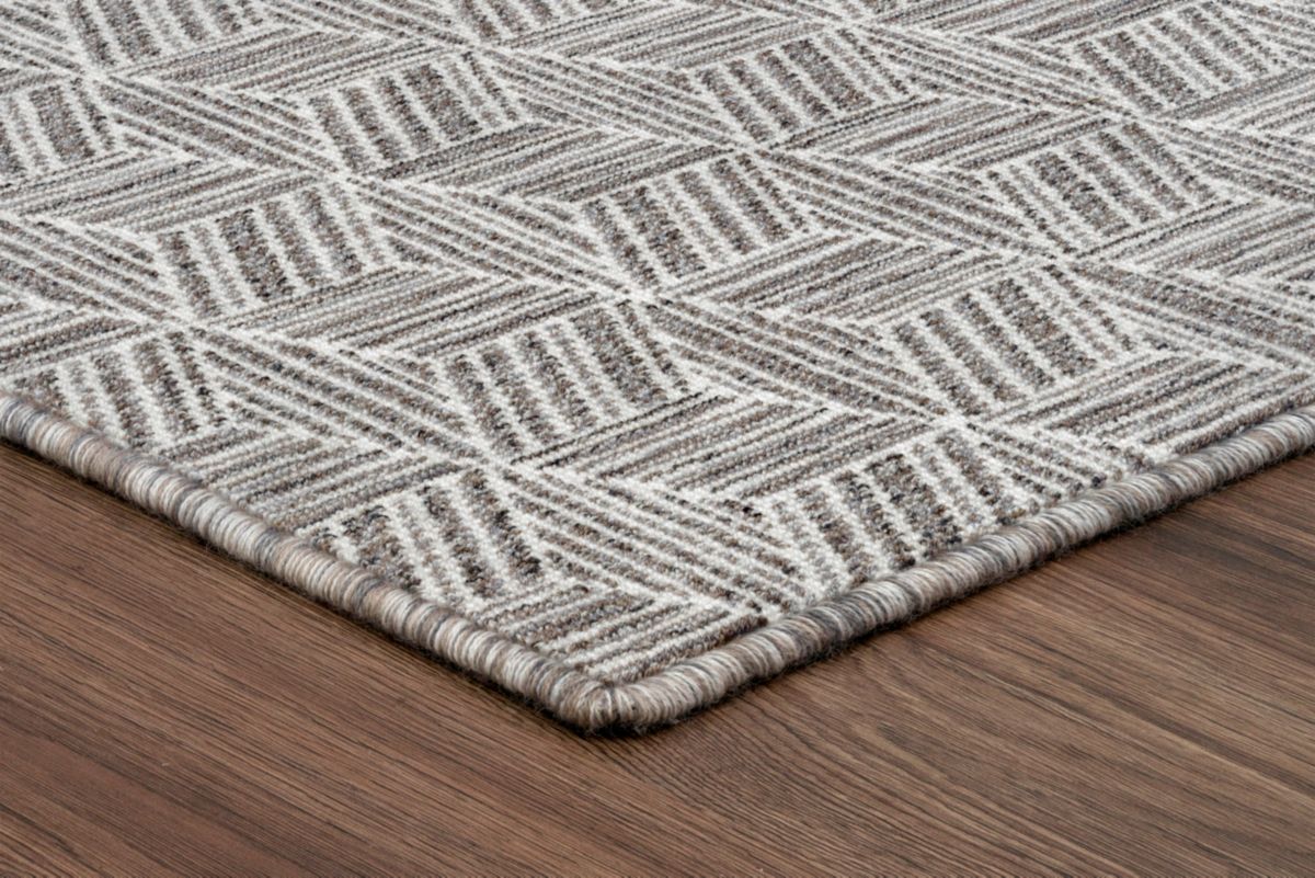 The PRISMATIC carpet from Prestige Mills is a geometric wool design, woven on jacquard looms for exceptional pattern flexibility. Using Wilton construction, colors are pulled to the front to form loops, while others remain hidden, creating intricate detail and depth. This technique allows for diverse pile heights, including level loop, multi-level loop, cut pile, and cut-and-loop options. The PRISMATIC carpet's refined craftsmanship and vibrant versatility make it a standout choice for any space.